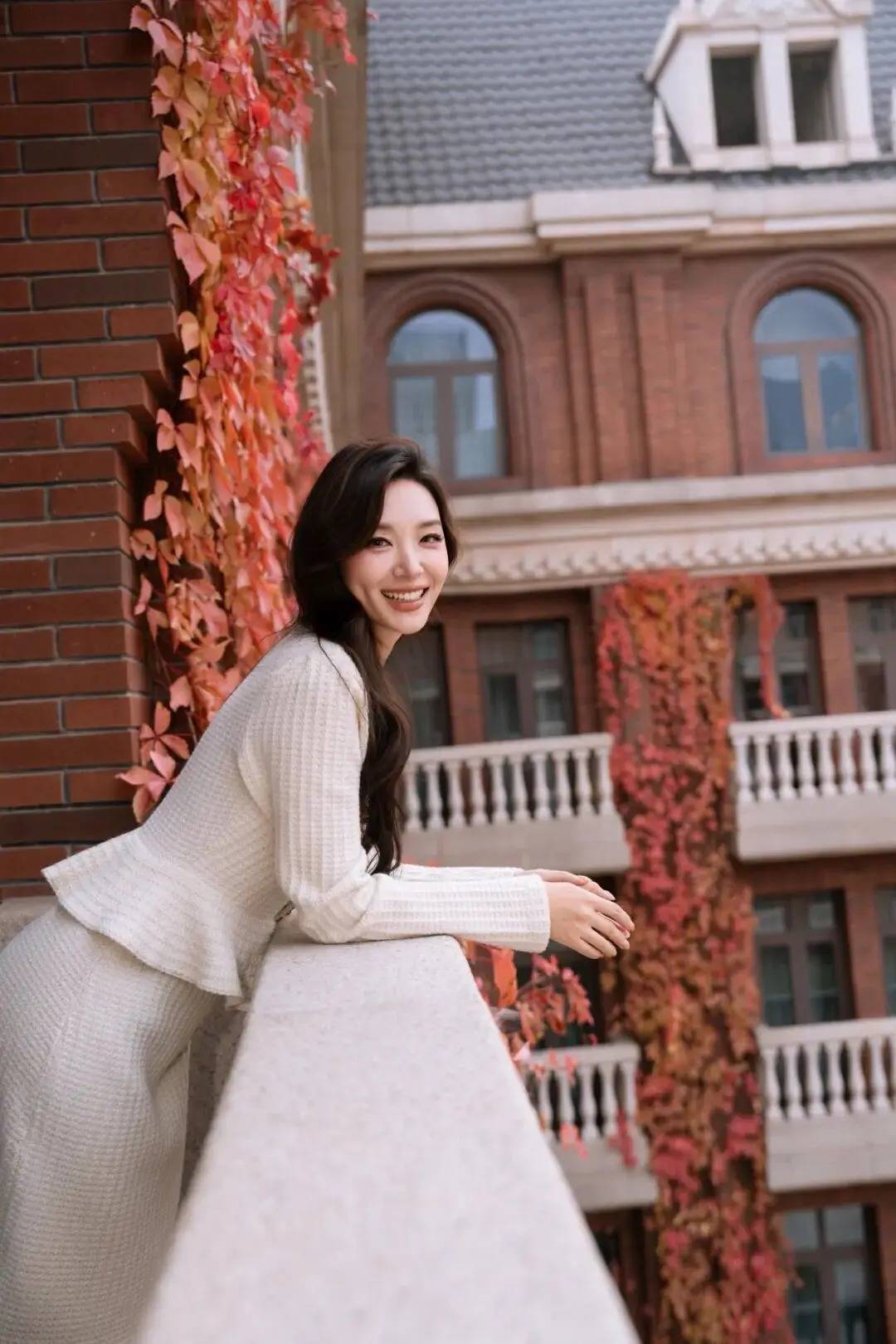 人物轻靠栏杆,双臂自然交叠,松弛的姿态消解了摆拍的僵硬感,还借背景的秋意衬出温柔氛围。身体微侧,让穿搭的柔美感更舒展,长发垂落的细节也让画面更灵动。神态是舒展的笑意,不用刻意凹造型,把日常的松弛优雅揉进动作里,轻松拍出有秋日氛围感的精致质感