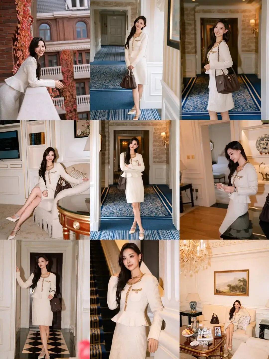 拍这类优雅风,别让肢体僵成板:倚靠建筑或家具时,身体微侧,既衬穿搭线条又显松弛。用小配饰互动,拎包、撩发都能消摆拍感。背景选带精致细节的空间,别让杂乱抢镜。神态不用硬凹甜笑,放松的微表情更贴氛围,穿搭质感和环境自然融,轻松出精致片